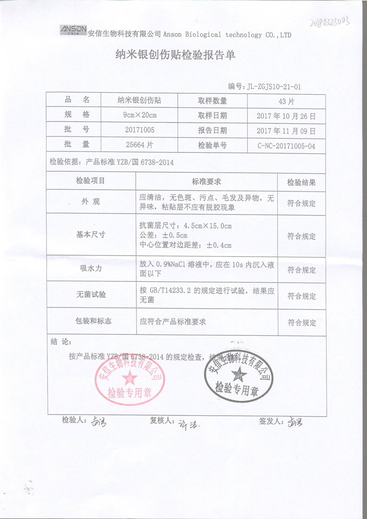 納米銀創傷貼 9cm*20cm 20171005 查看詳情