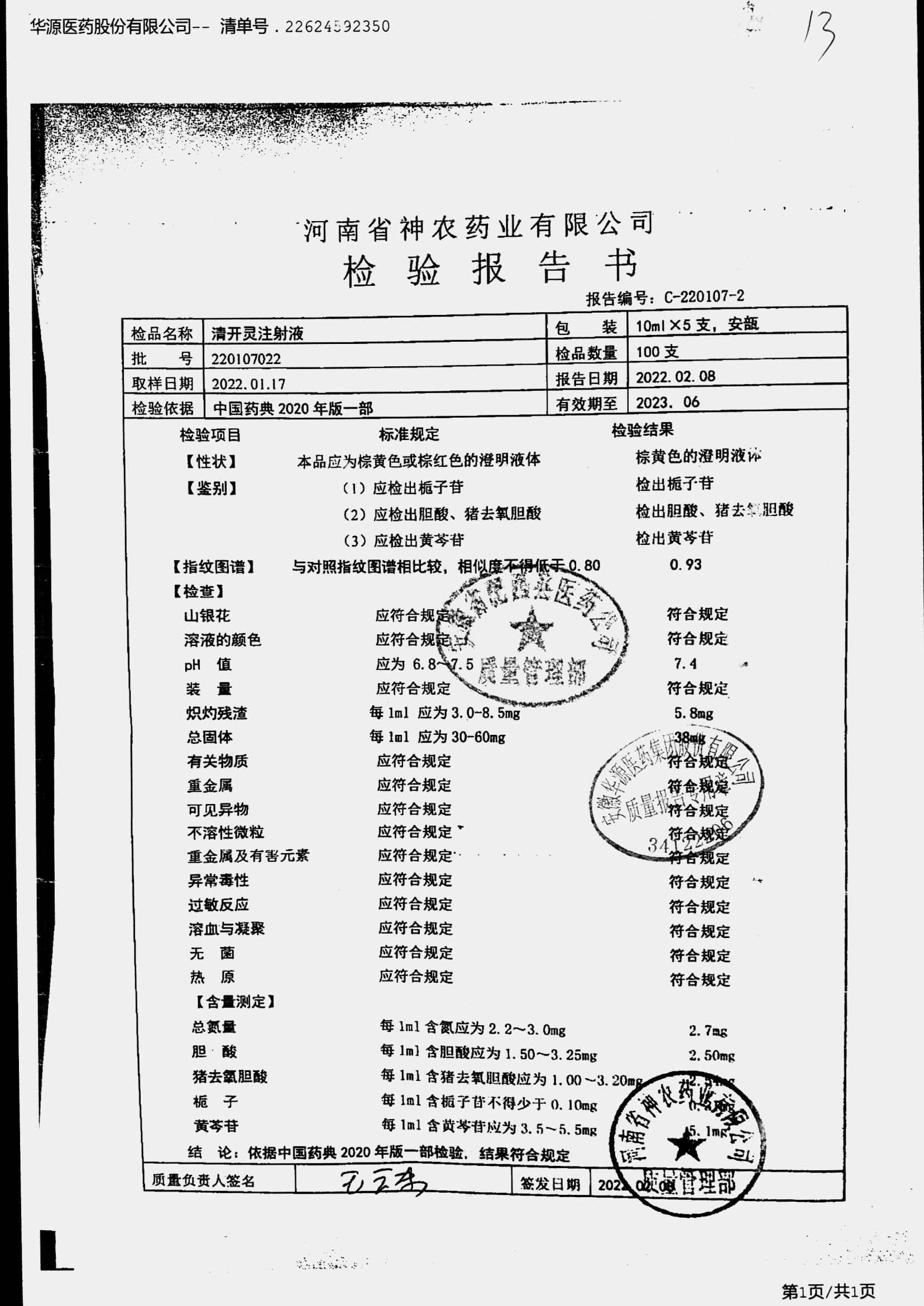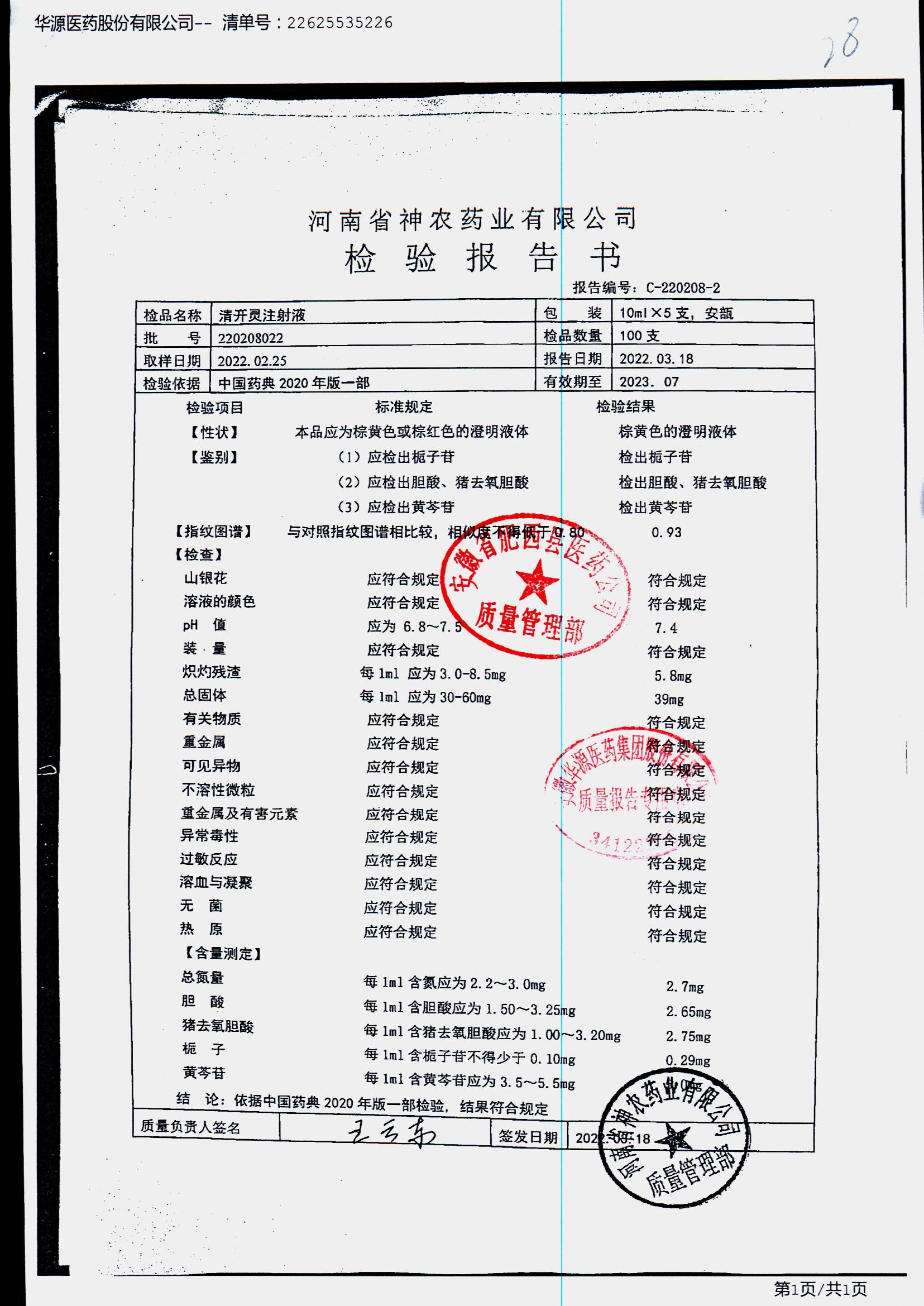 清開靈注射液 10ml*5支 220107022 查看詳情