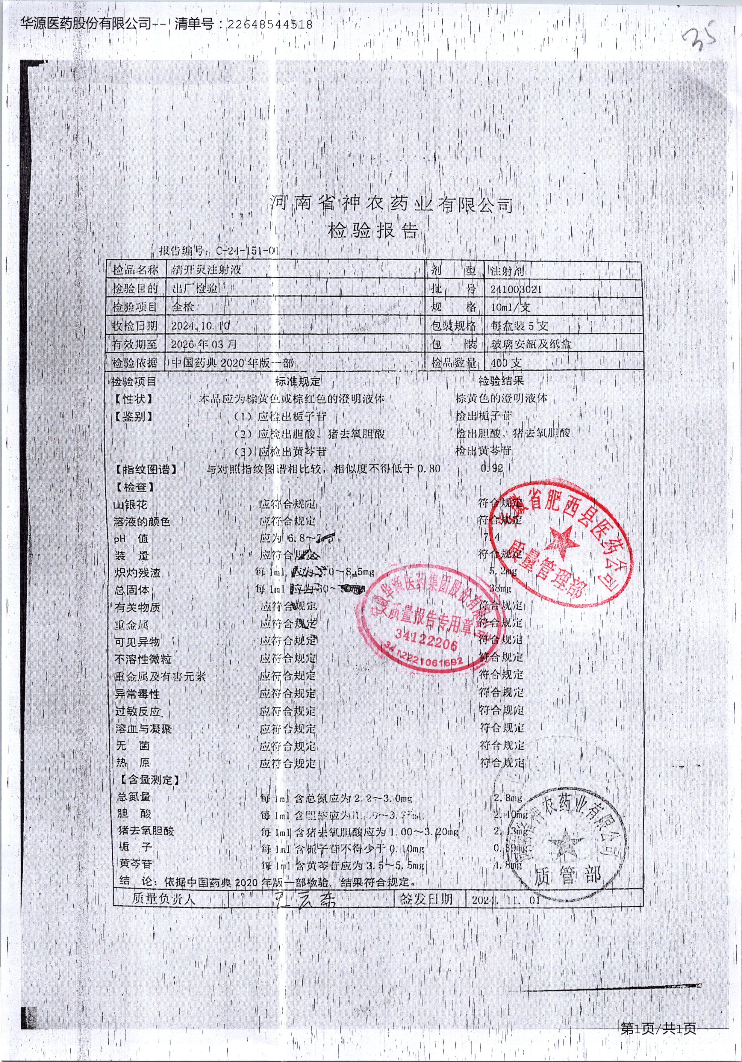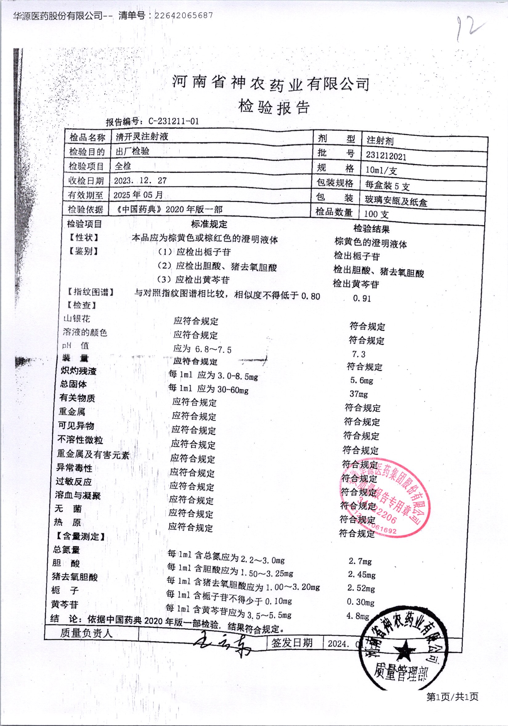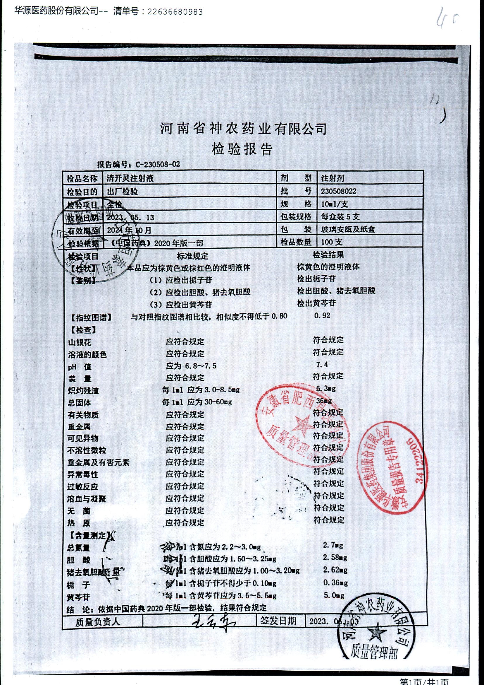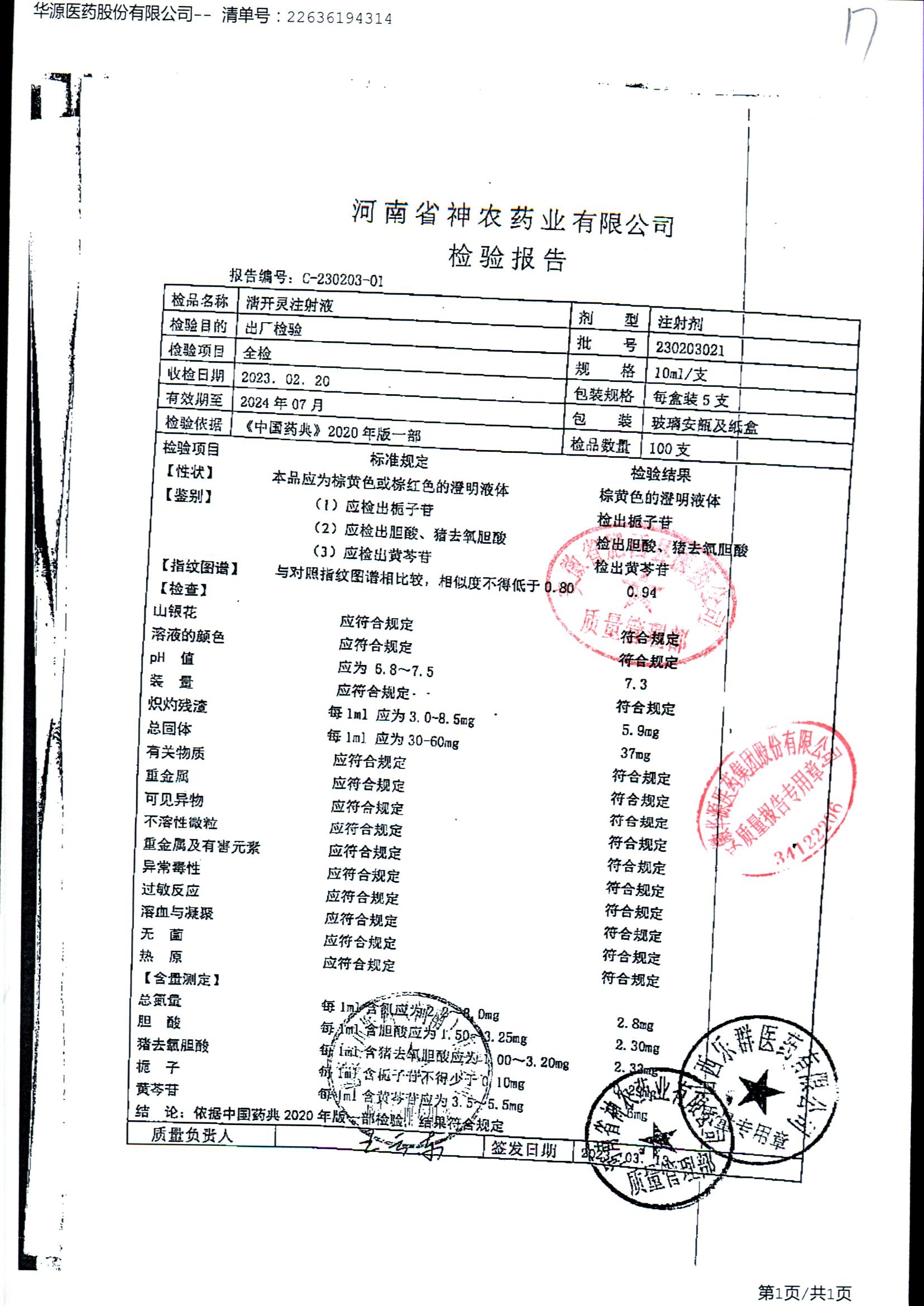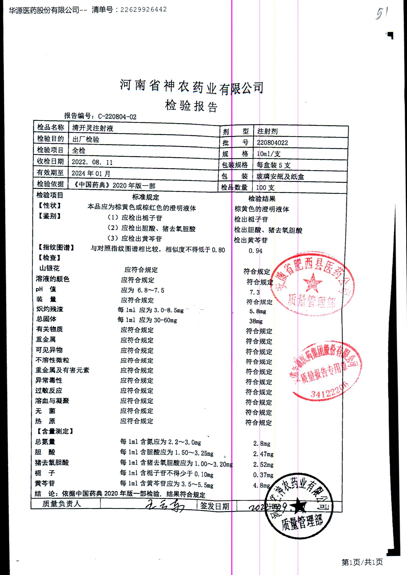 清開靈注射液 10ml*5支 240104022 查看詳情