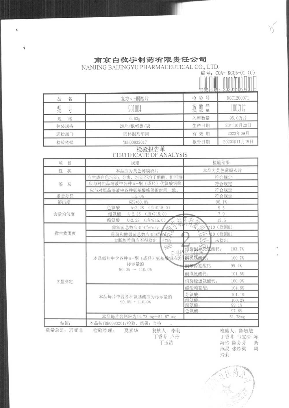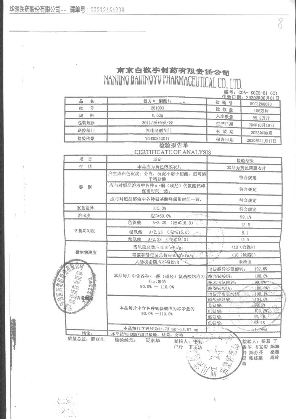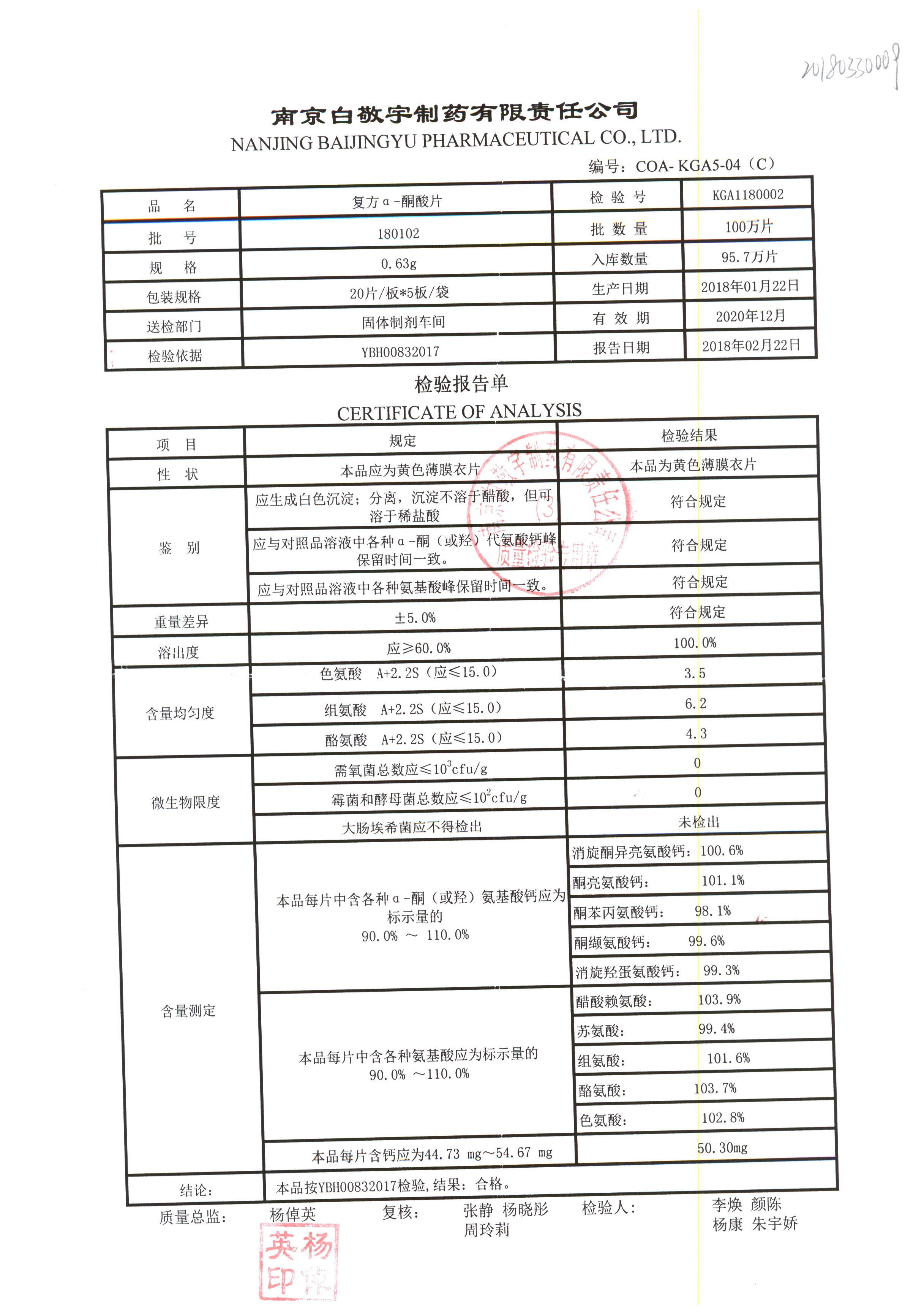 | 復方a-酮酸片 | 0.63g*20s*5板 | 201005 | 查看詳情 |