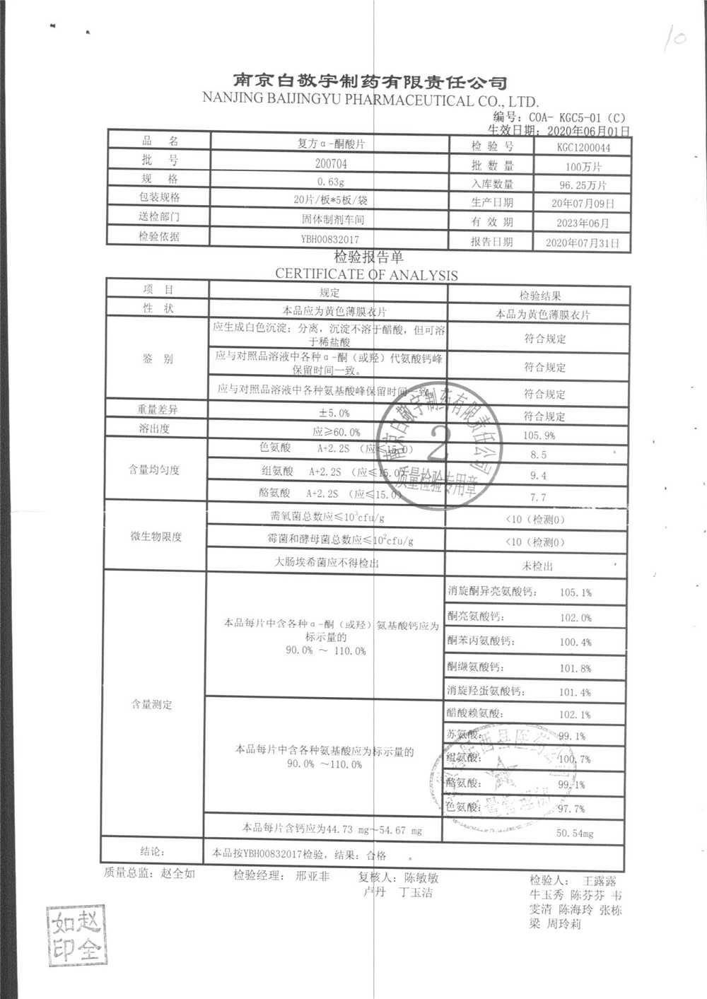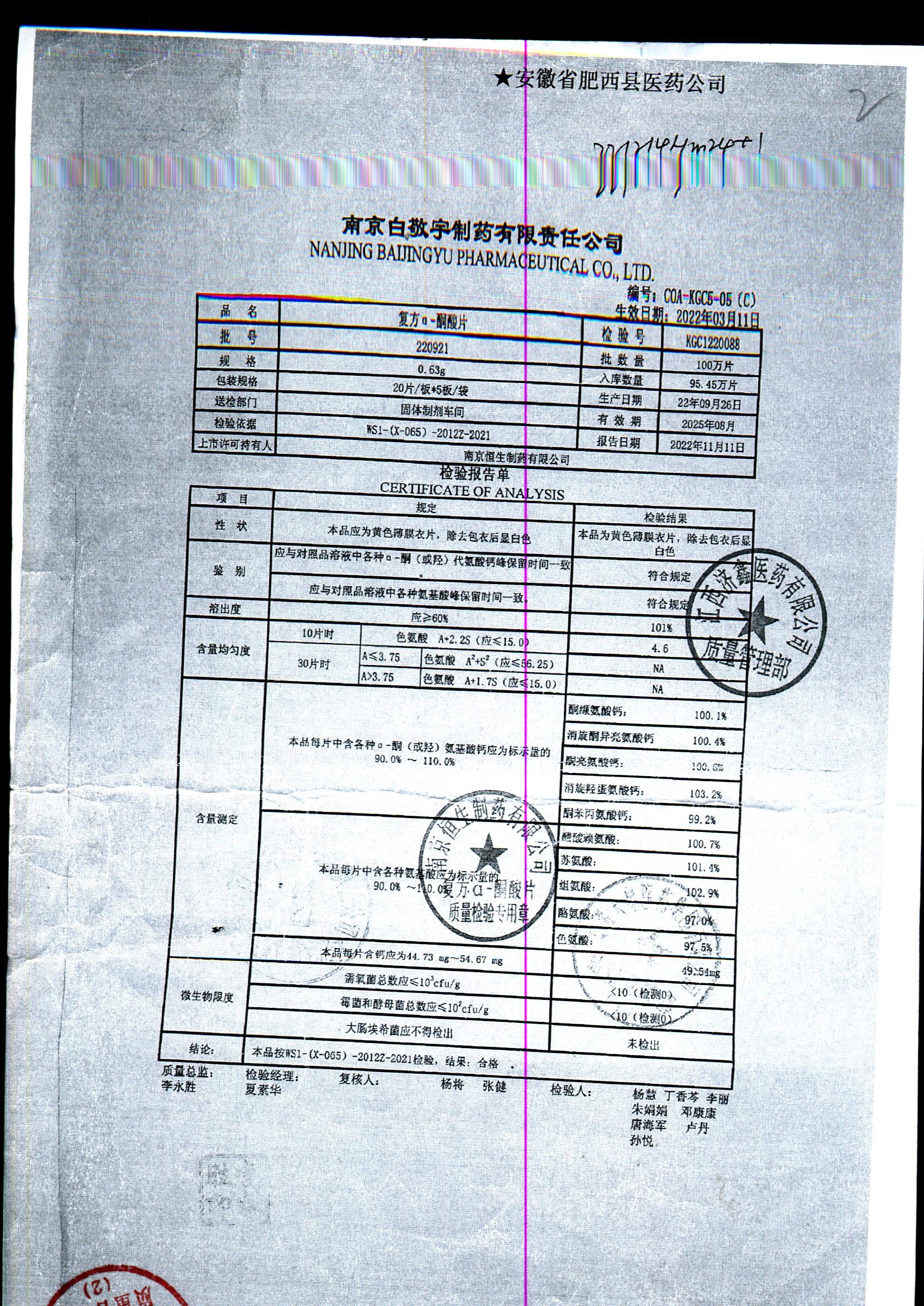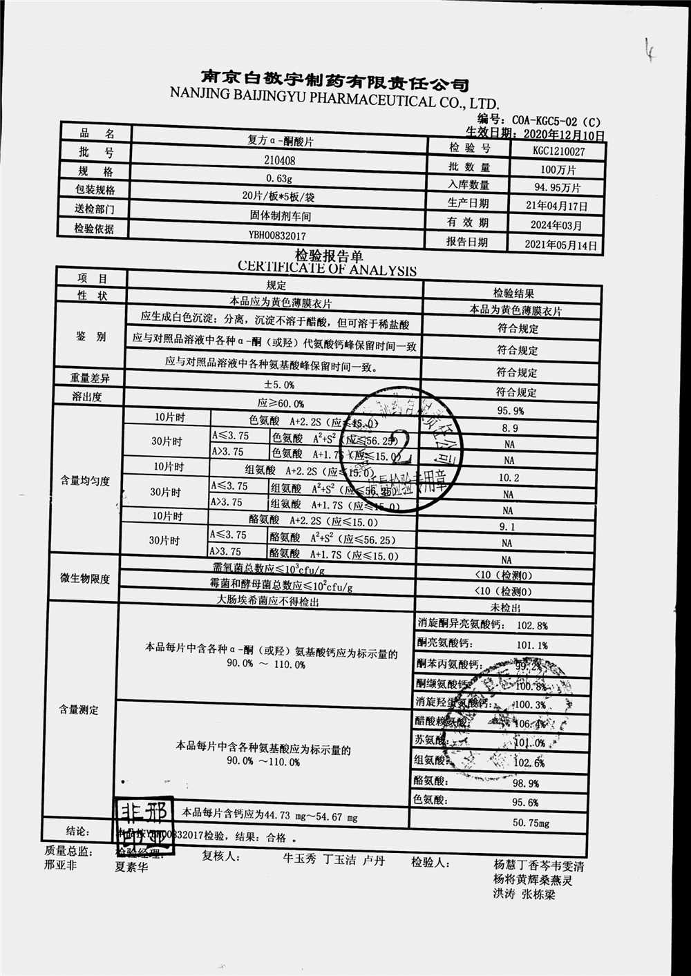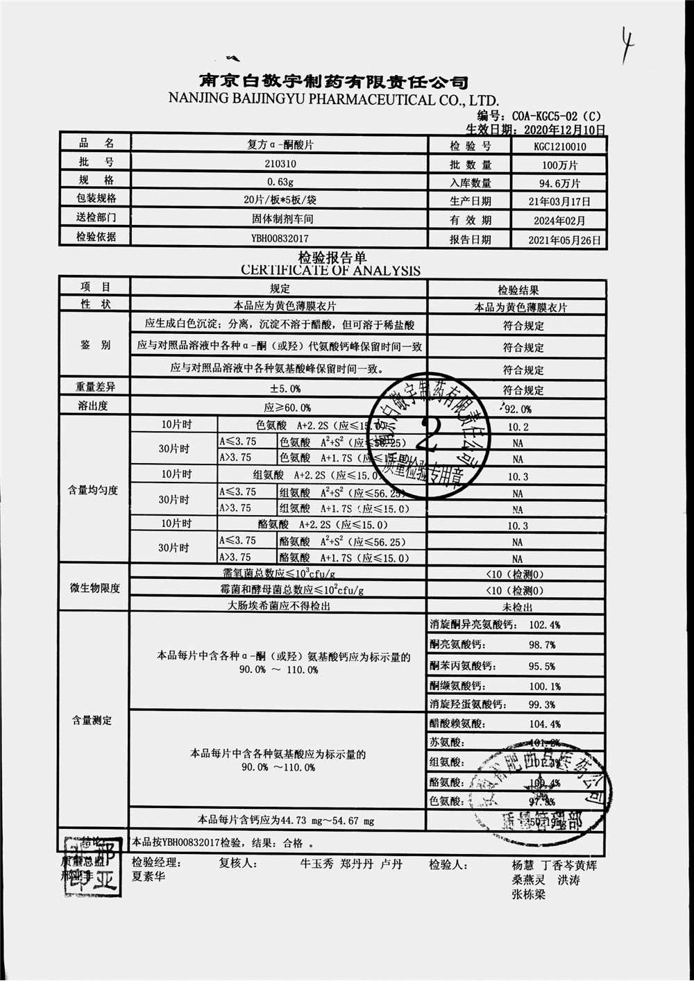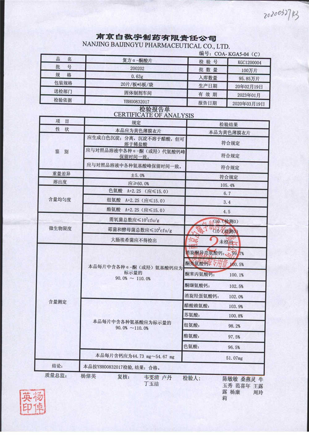 | 復方a-酮酸片 | 0.63g*20s*5板 | 210408 | 查看詳情 |