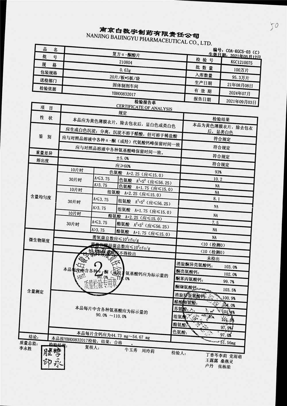 | 復方a-酮酸片 | 0.63g*20s*5板 | 210801 | 查看詳情 |