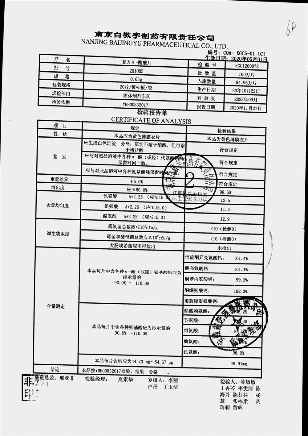 | 復方a-酮酸片 | 0.63g*20s*5板 | 210406 | 查看詳情 |
