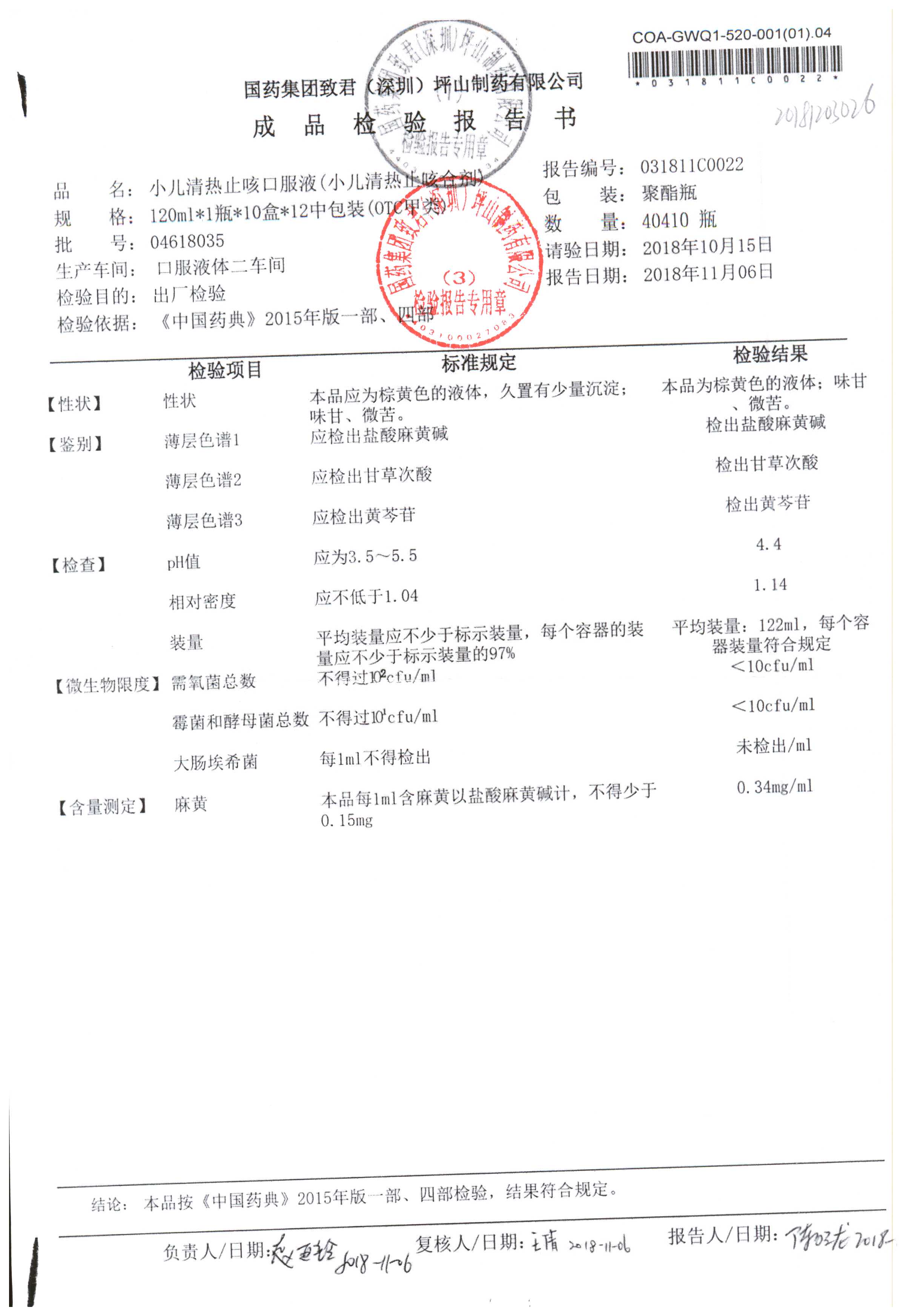 小兒清熱止咳口服液 120ml 04618035 查看詳情
