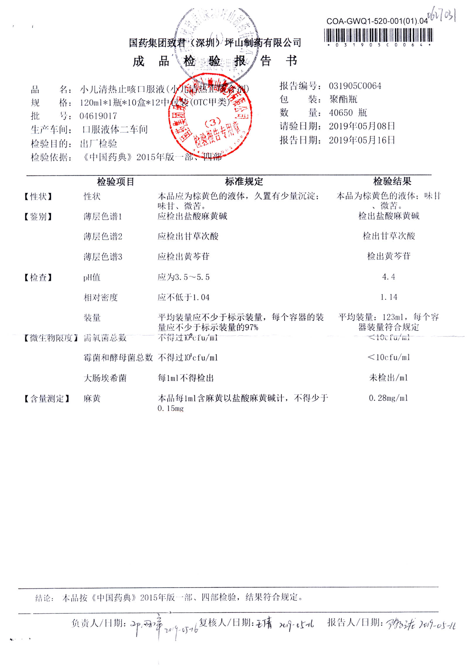 小兒清熱止咳口服液 120ml 04619004 查看詳情