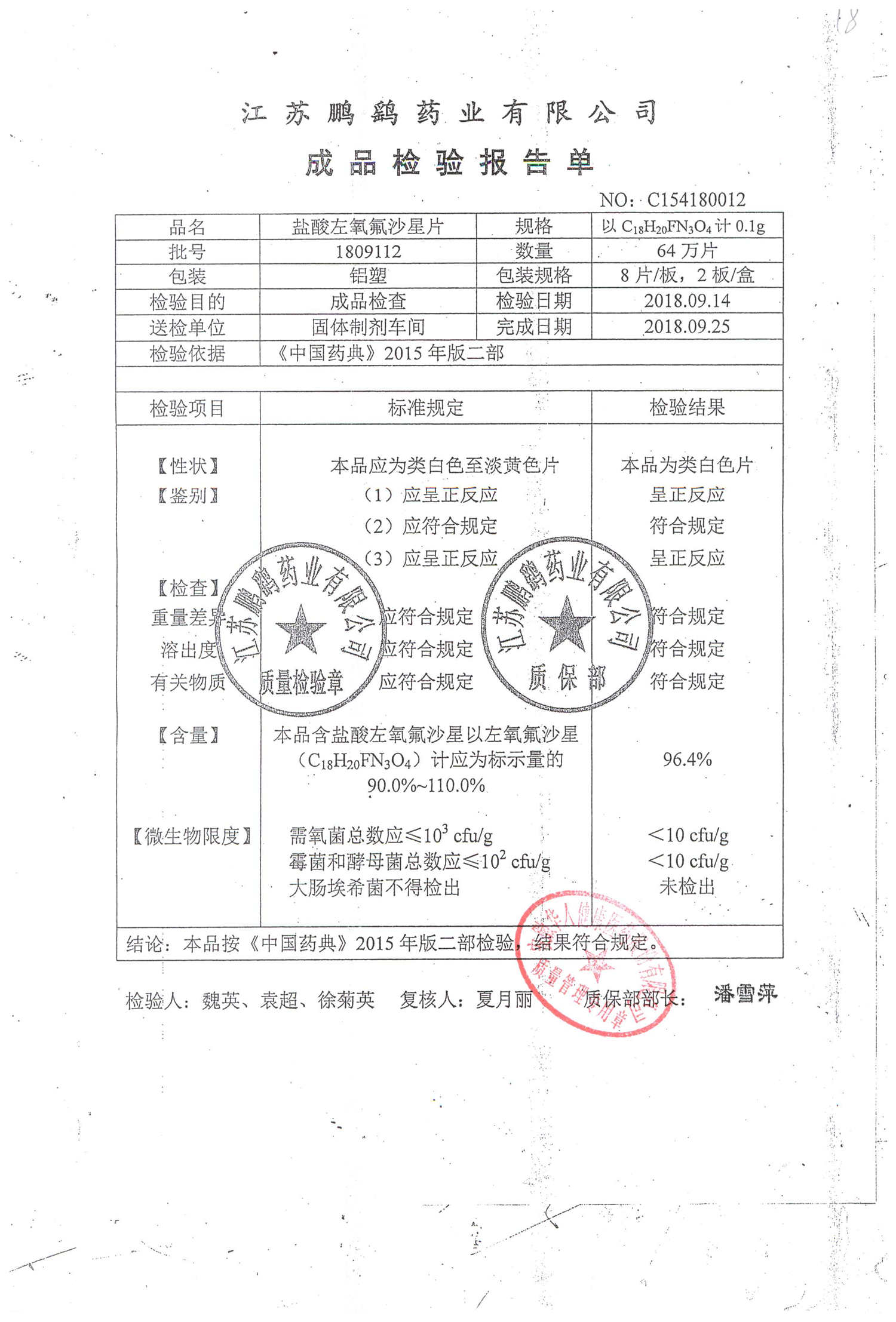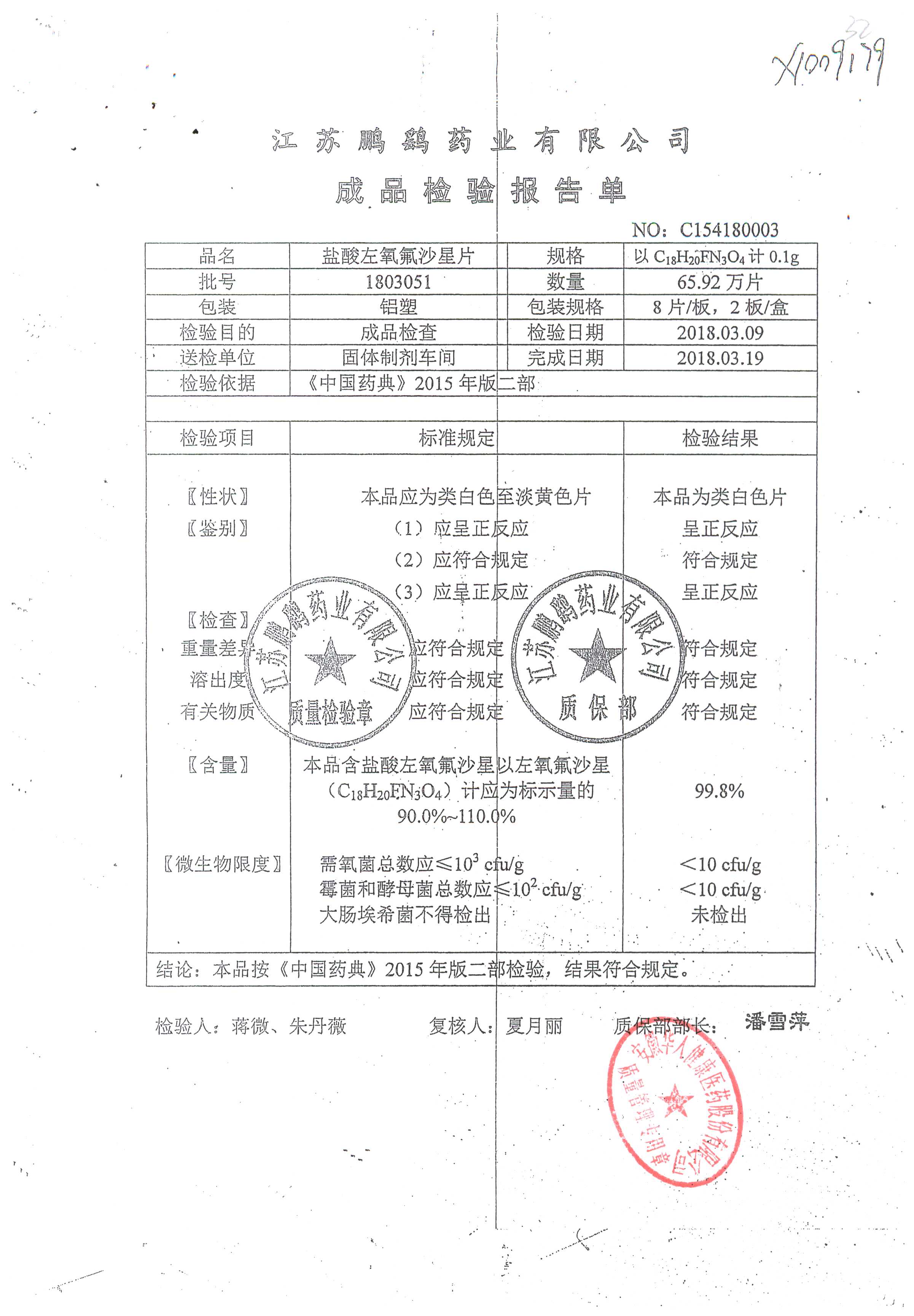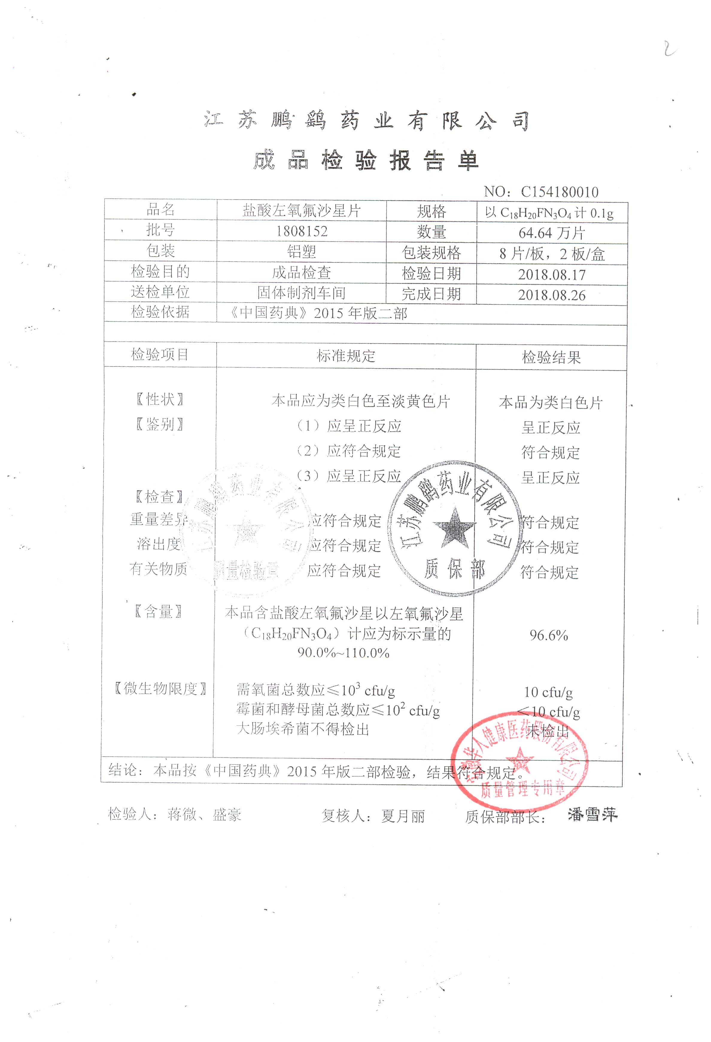 鹽酸左氧氟沙星片 16s 1803051 查看詳情