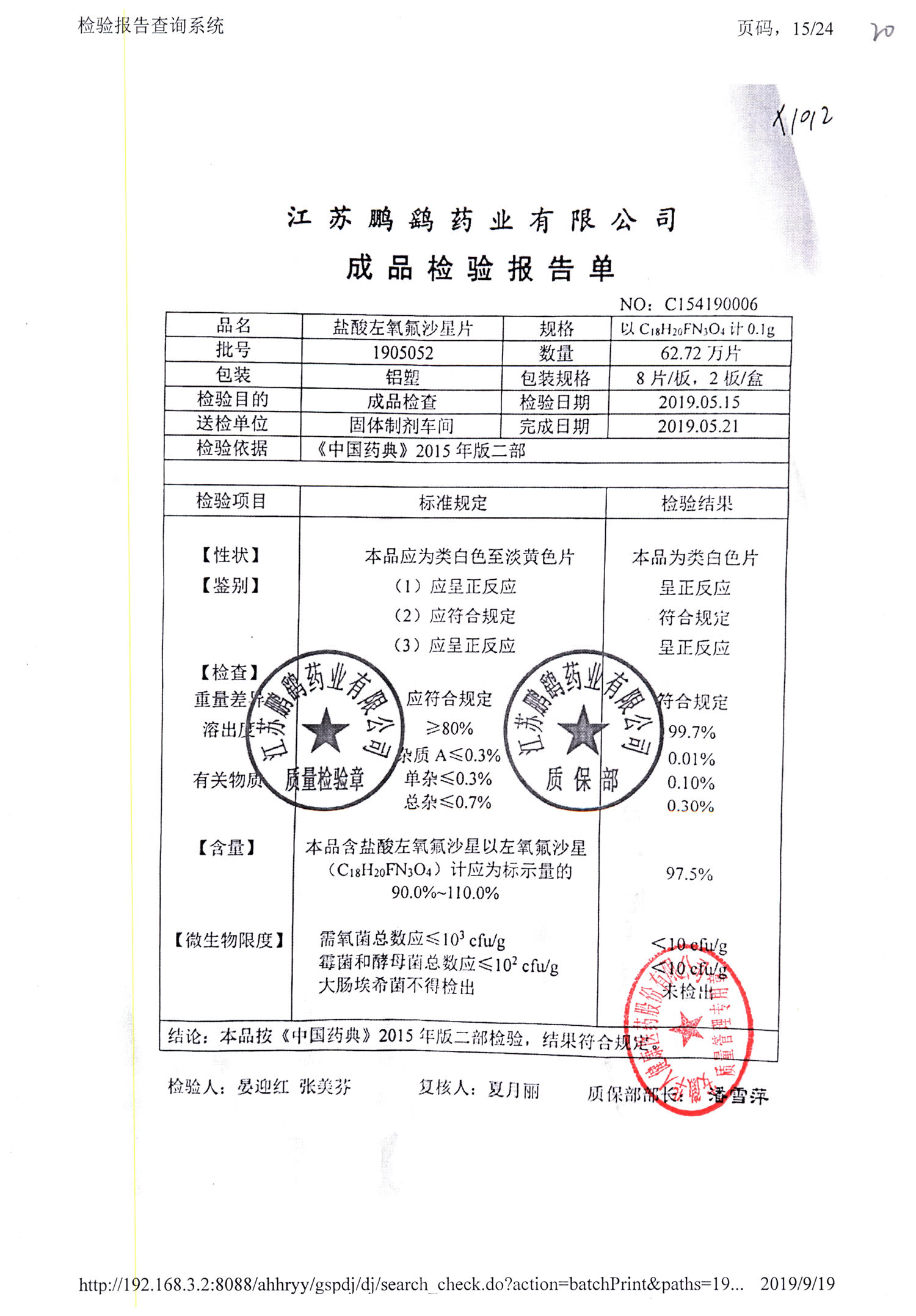 鹽酸左氧氟沙星片 16s 1905052 查看詳情