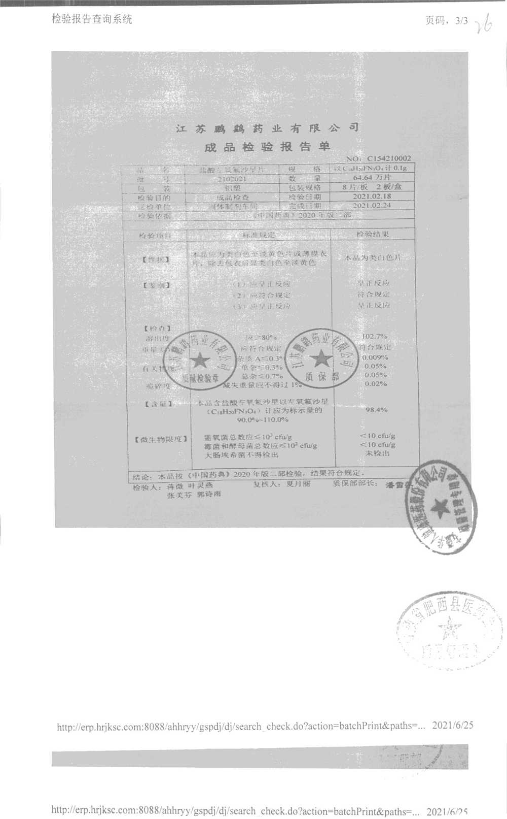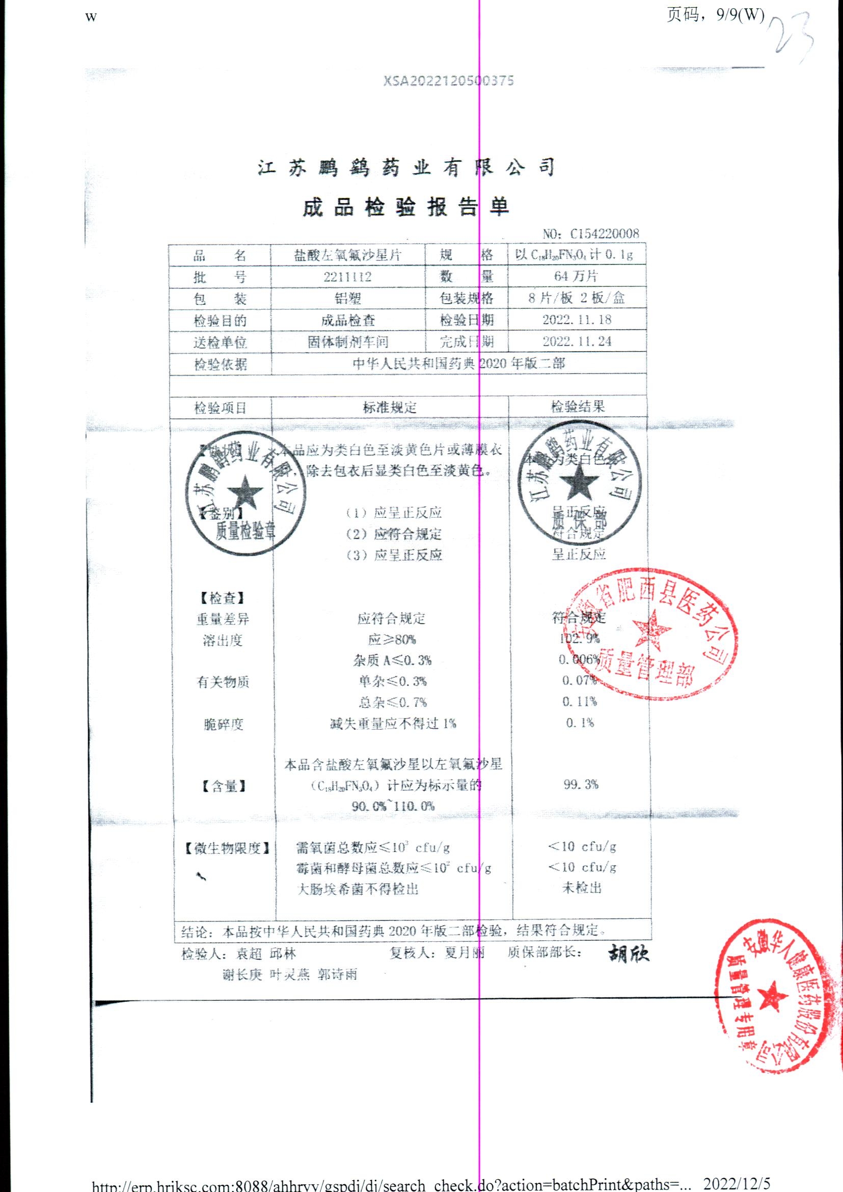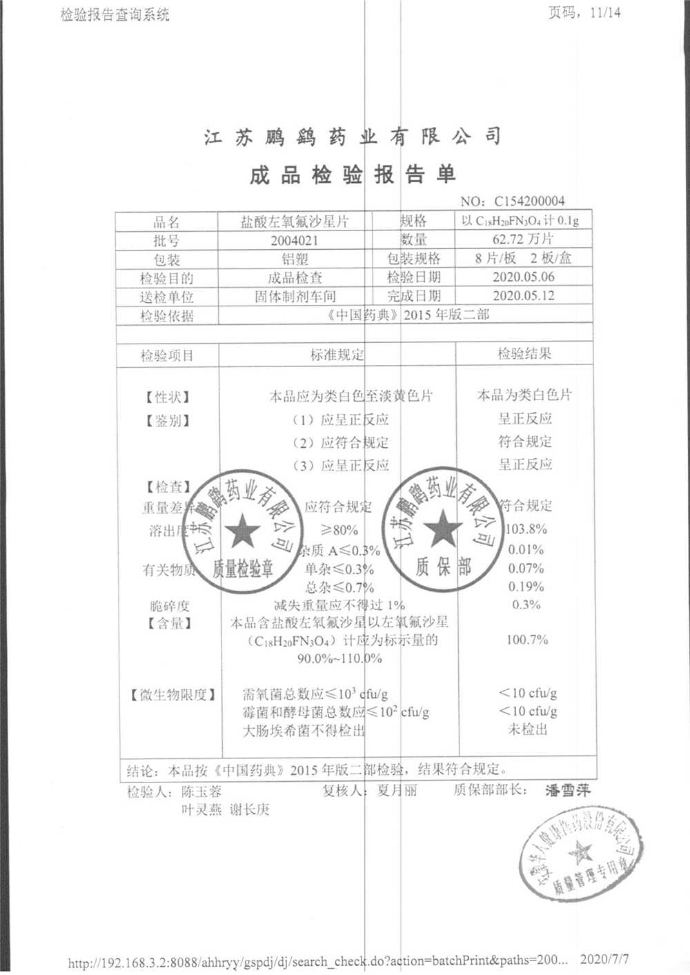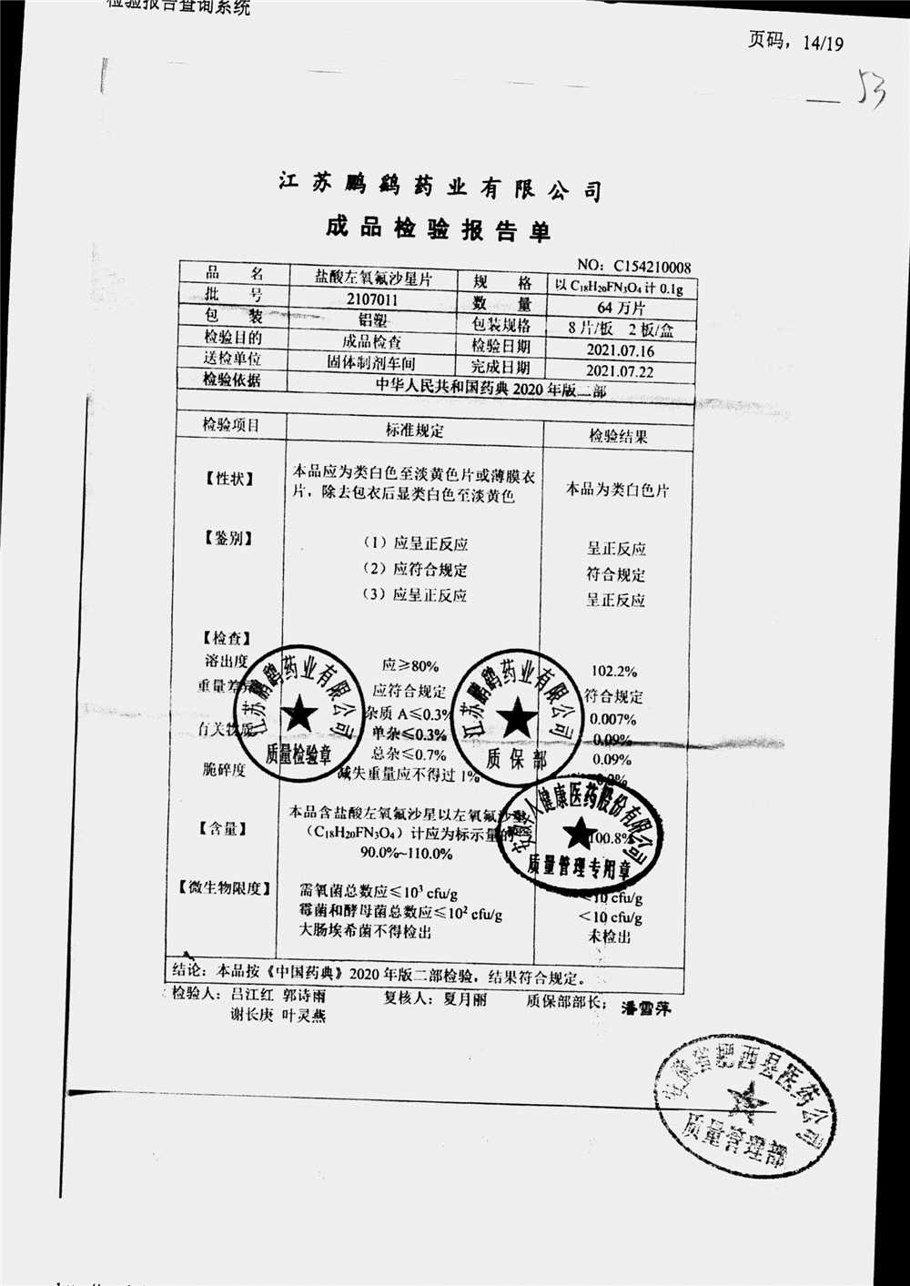鹽酸左氧氟沙星片 16s 2102021 查看詳情