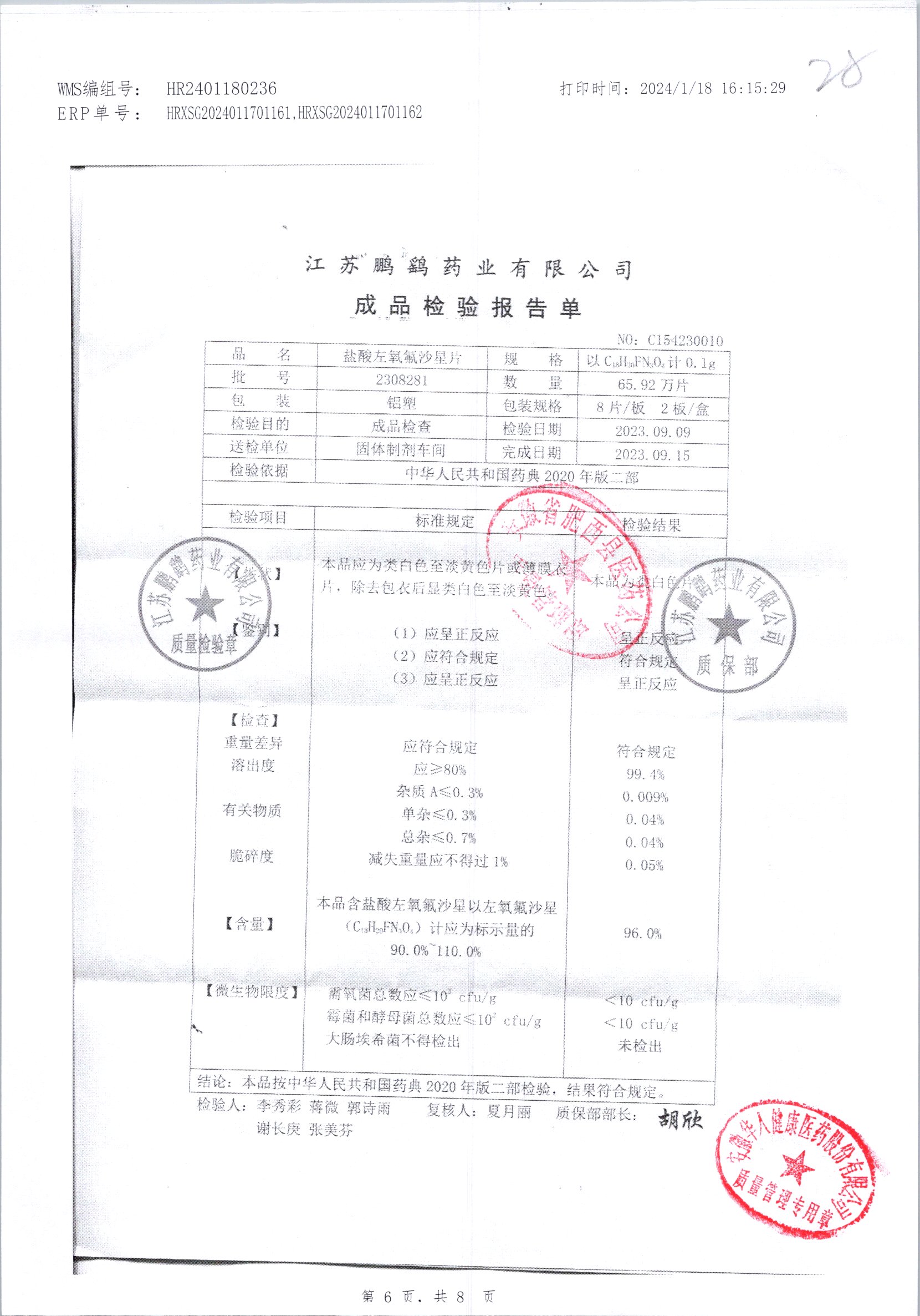 鹽酸左氧氟沙星片 16s 2409031 查看詳情