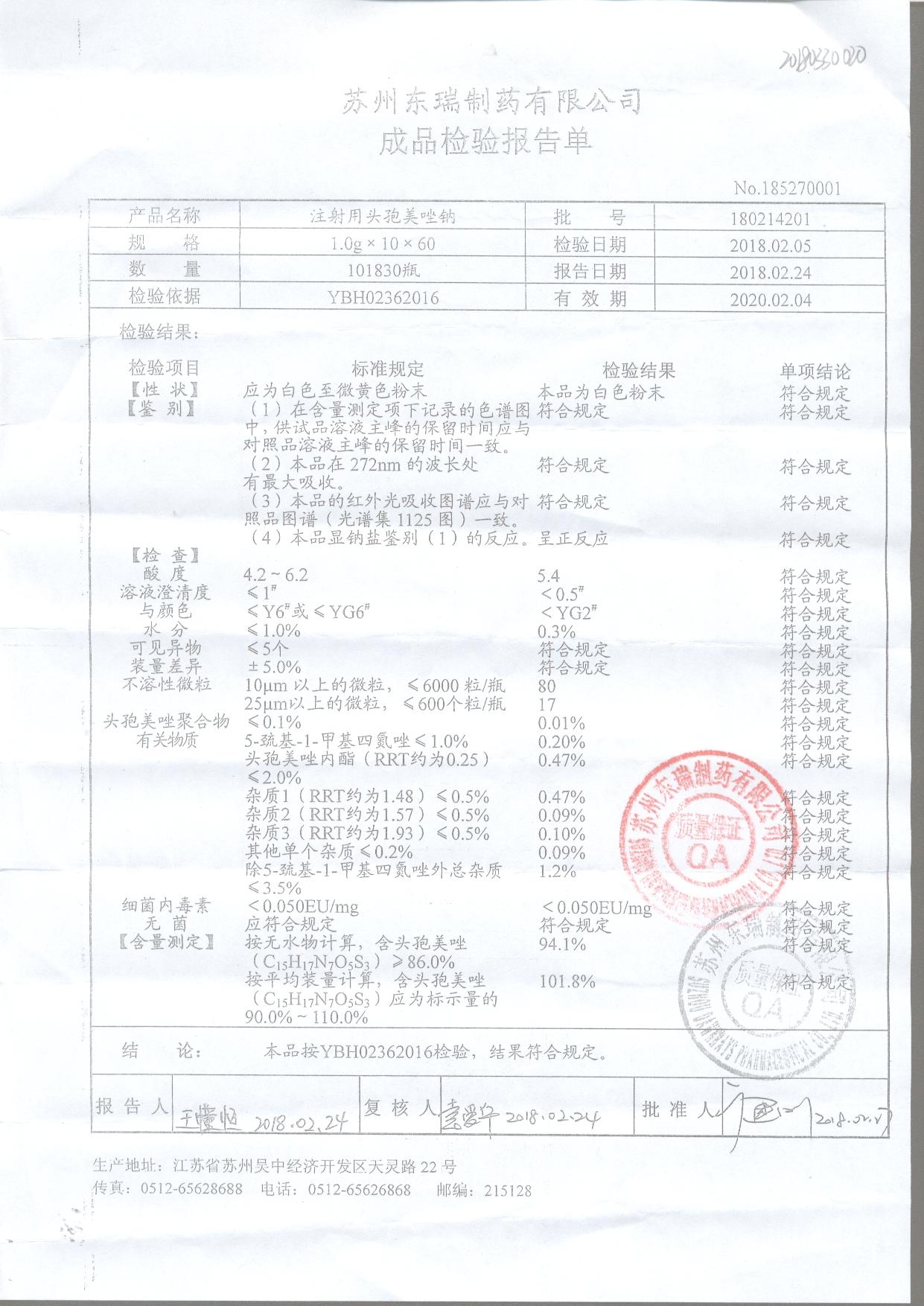 注射用頭孢美唑鈉 1g*10*60 180214201 查看詳情