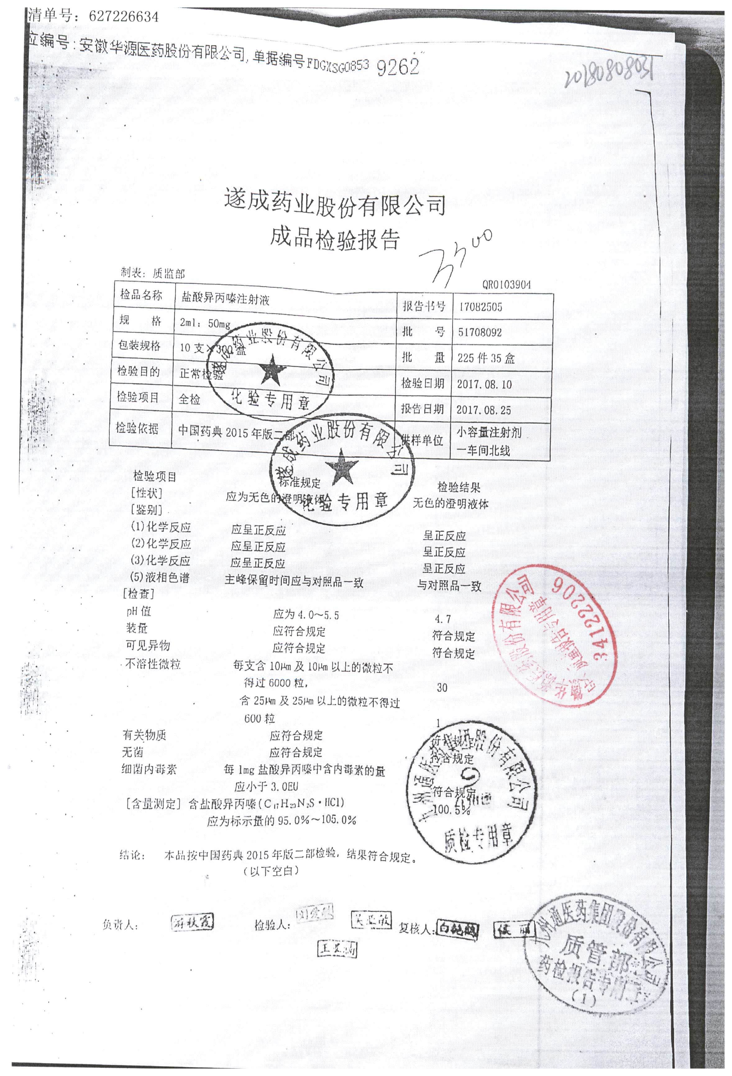 鹽酸異丙嗪注射液 2ml:50mg 51708092 查看詳情